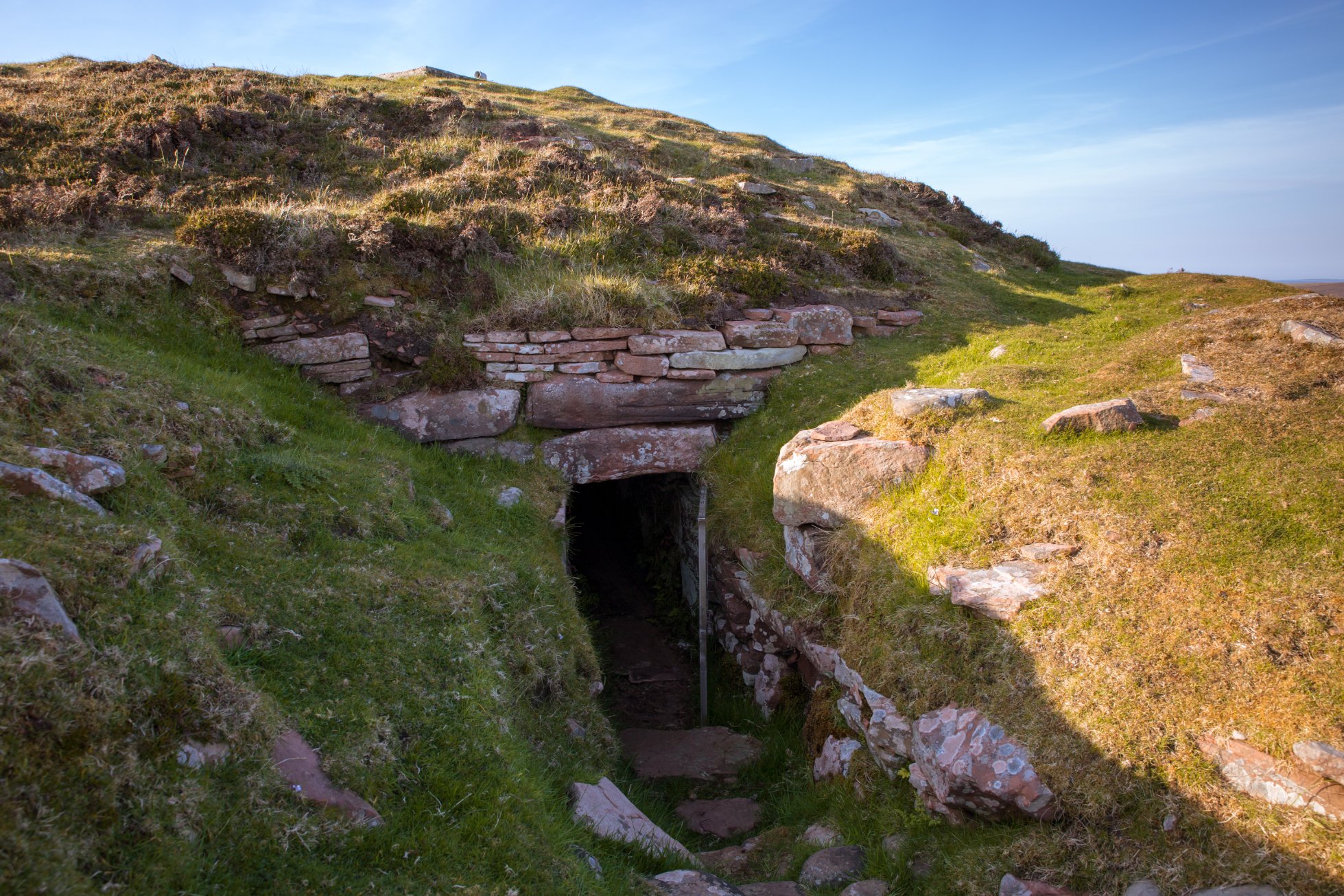It's unique in that it's made from Eday's famous red sandstone, and it offers such magnificent views over the surrounding landscape. It's a site rarely visited too, so there's a good chance you can crawl in and have it all to yourself. It's the perfect opportunity to connect with history, nature and the magnetic north all in one go.