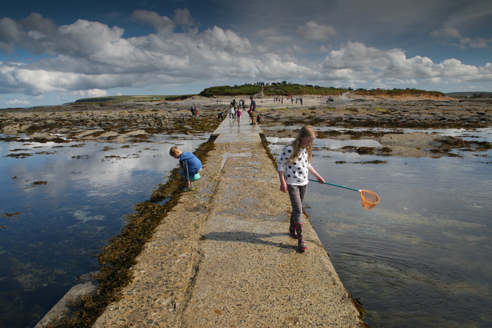 It's a tidal island so only accessible for around two hours either side of low tide, and it's linked to a headland by a concrete causeway visible only when the sea retreats. As it does, it reveals fantastic rockpools teeming with sea life on either side. The rock formations are eye-catching too.