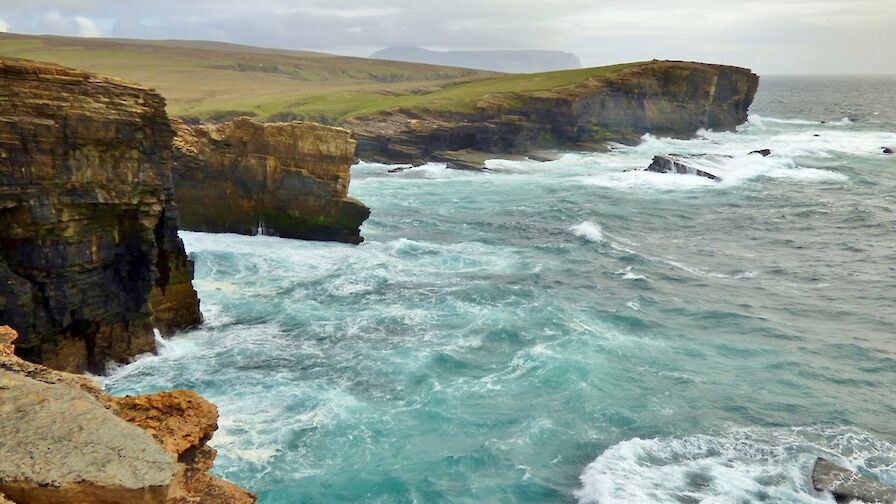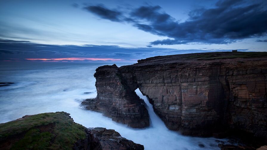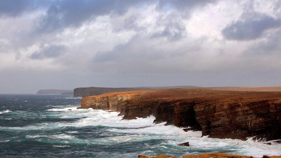 Yesnaby, south of the Bay of Skaill, is simply one of the most popular viewpoints in Orkney. The area’s cliffs and headlands offer fantastic sea views and it is a great place to visit in all kinds of weather. North from the car park you’ll find the Broch of Borwick, an ancient structure perched on the cliff edge. Head south and you’ll see the Brough of Bigging, a huge headland with superb views of the cliffs to the north and south, including a glimpse of the Old Man of Hoy if the conditions are right.